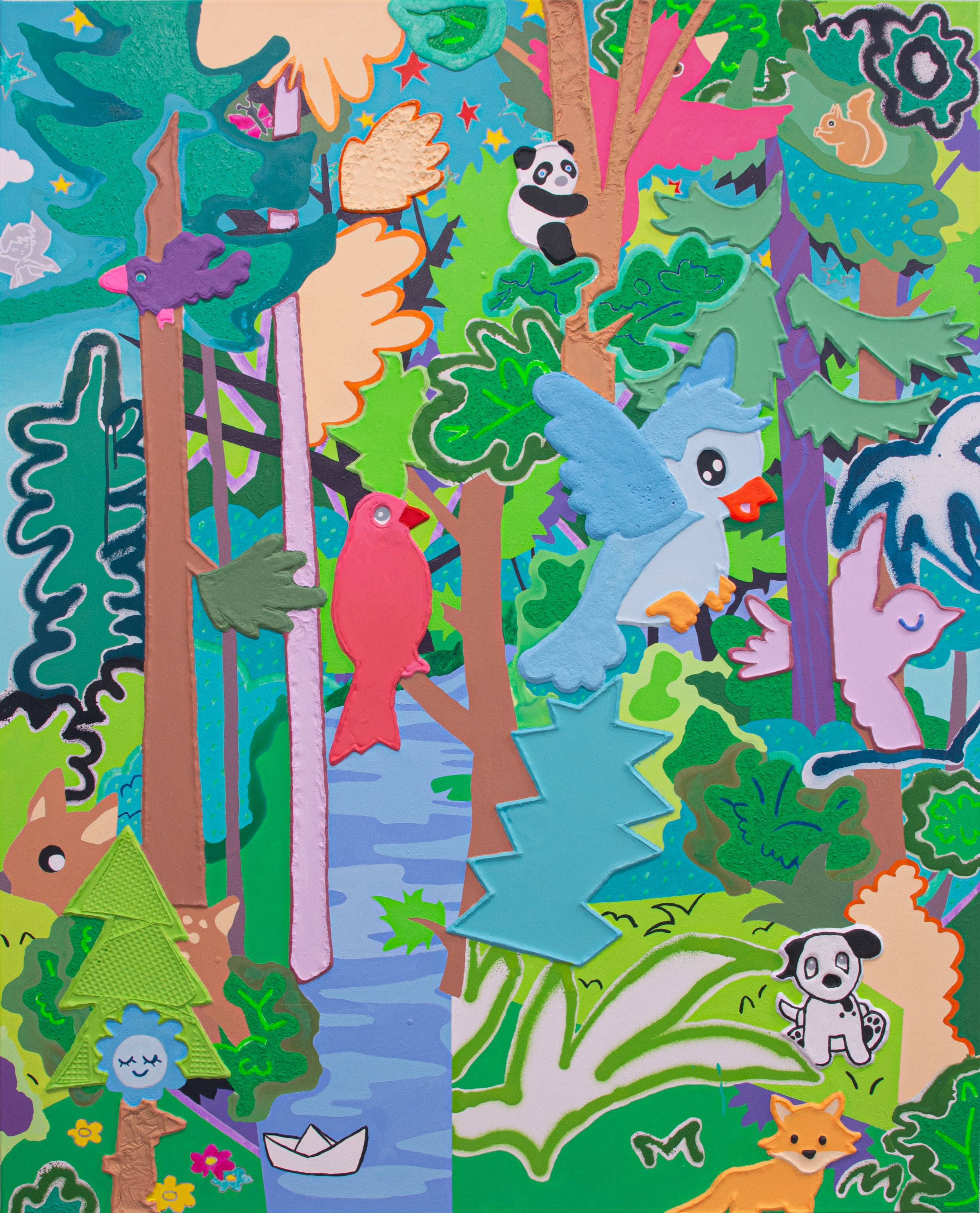 Luca Harlacher, Little Green Universe Full Of Untranslated Songs, 2026, Mixed media on canvas, 130 x 105cm